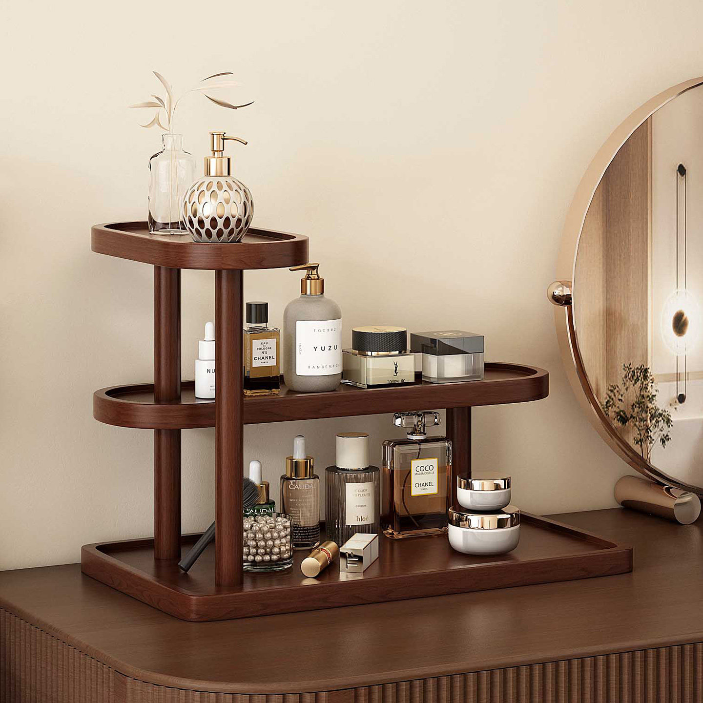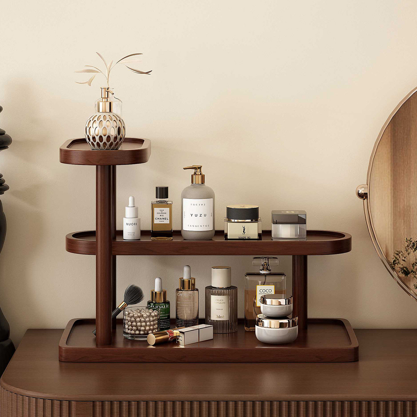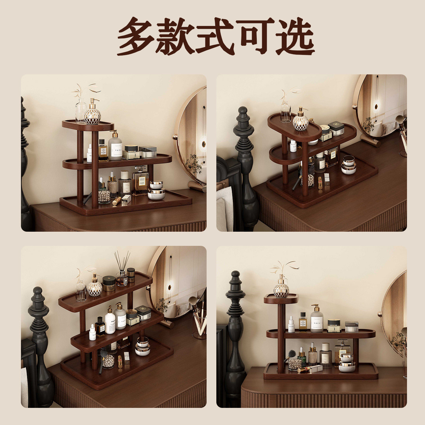 复古实木化妆品收纳盒桌面梳妆台口红香水置物架首饰护肤品整理架