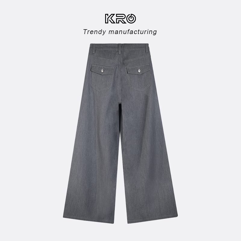 【随性系列】KRO新款灰色高腰西装裤女极简百搭显瘦垂感拖地长裤