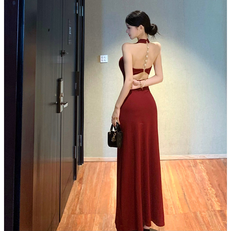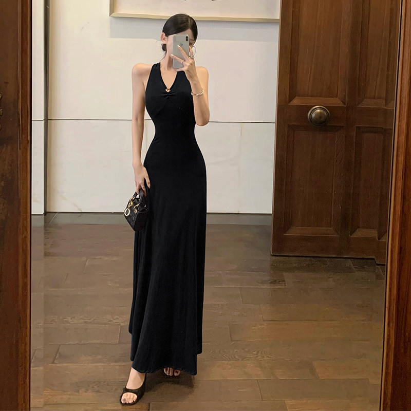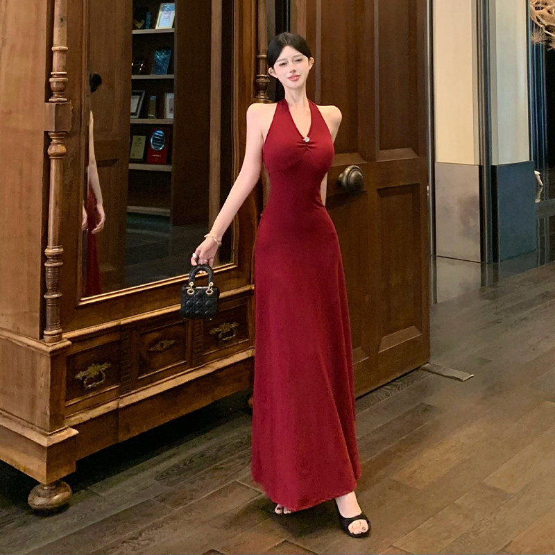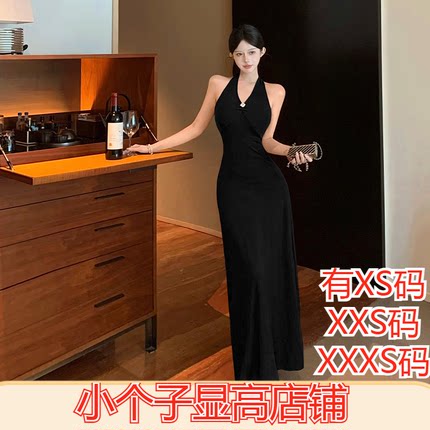 女装春季150cm显高加小码XXXS小个子2026露背挂脖连衣裙包臀长裙