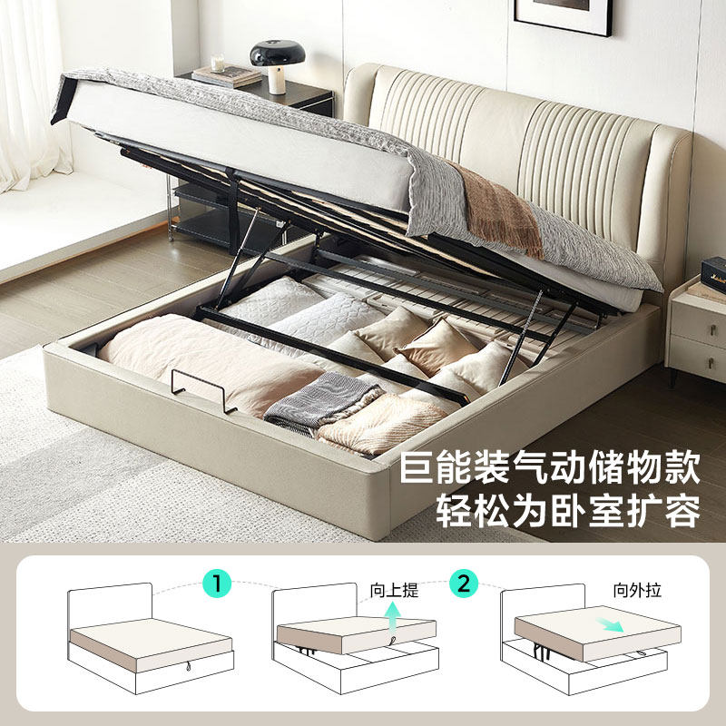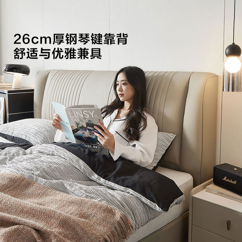 林氏家居真皮床主卧室高箱储物落地2米x2米2大床高端大气双人家具