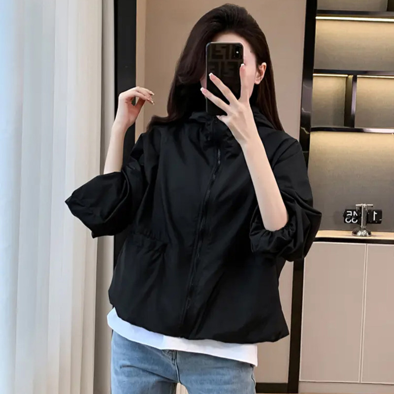 短外套女薄款2025春夏季新款小众不撞款宽松百搭连帽小个子冲锋衣