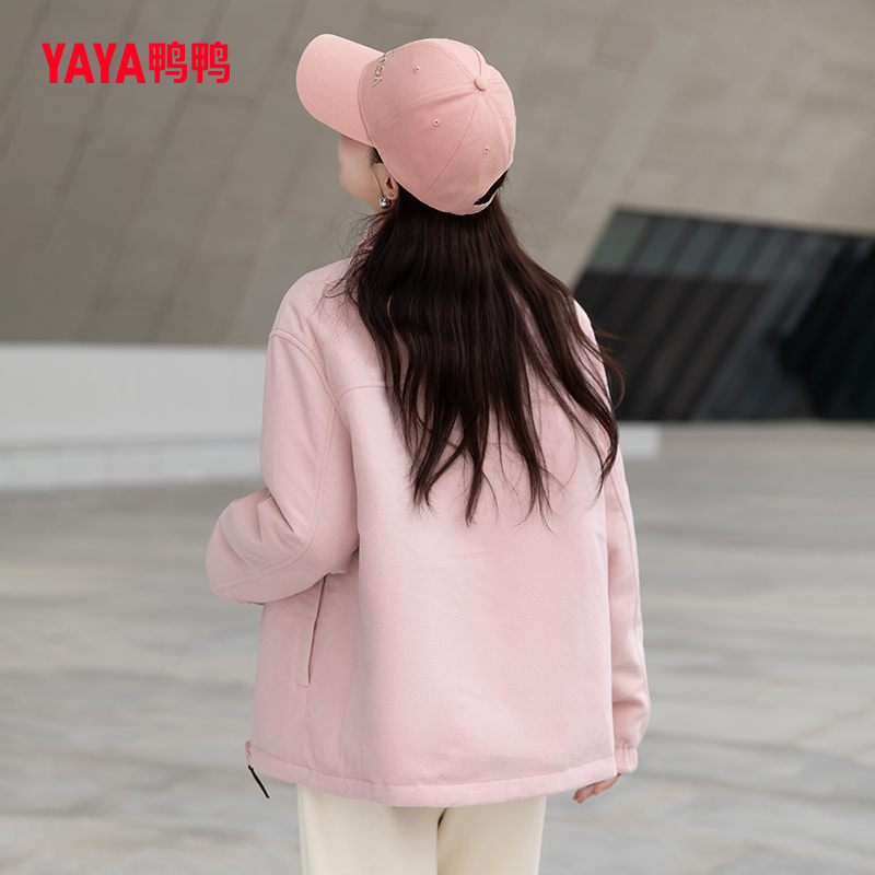 鸭鸭情侣双面穿轻薄羽绒服女款保暖抓绒立领休闲运动短款羽绒外套