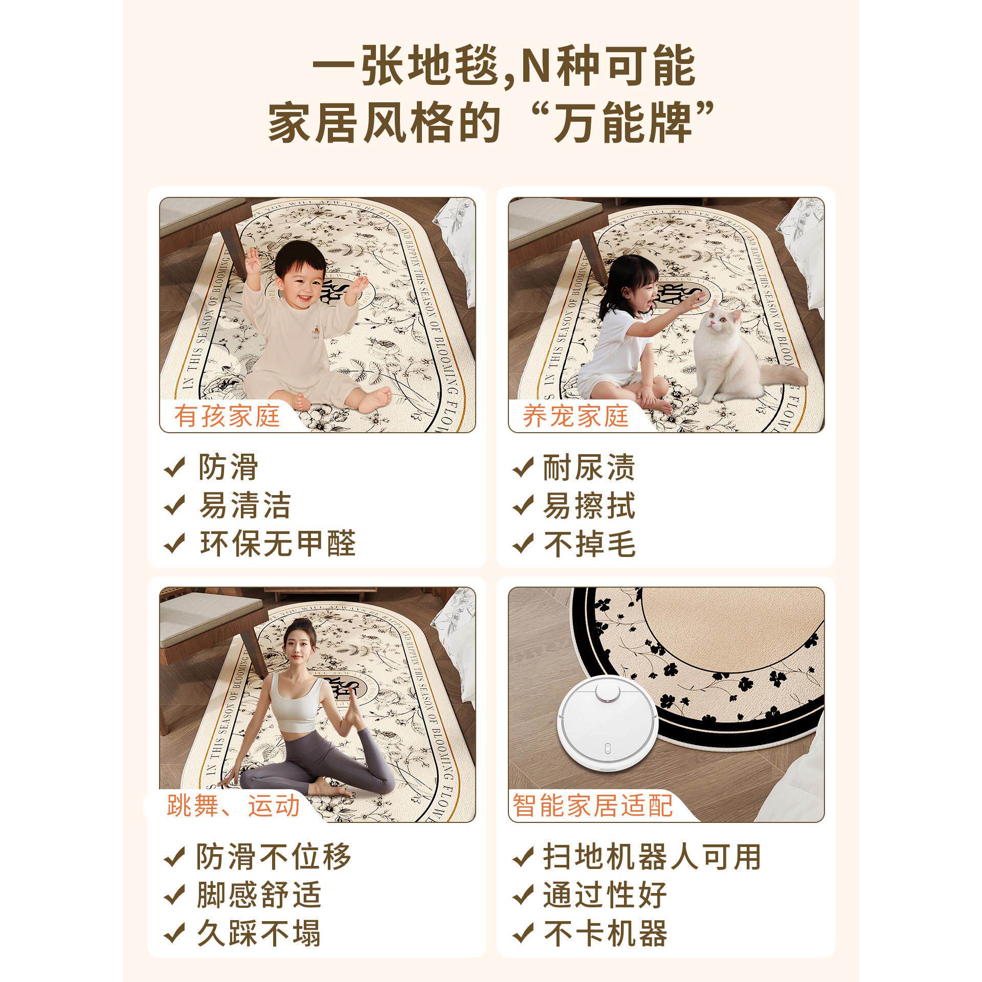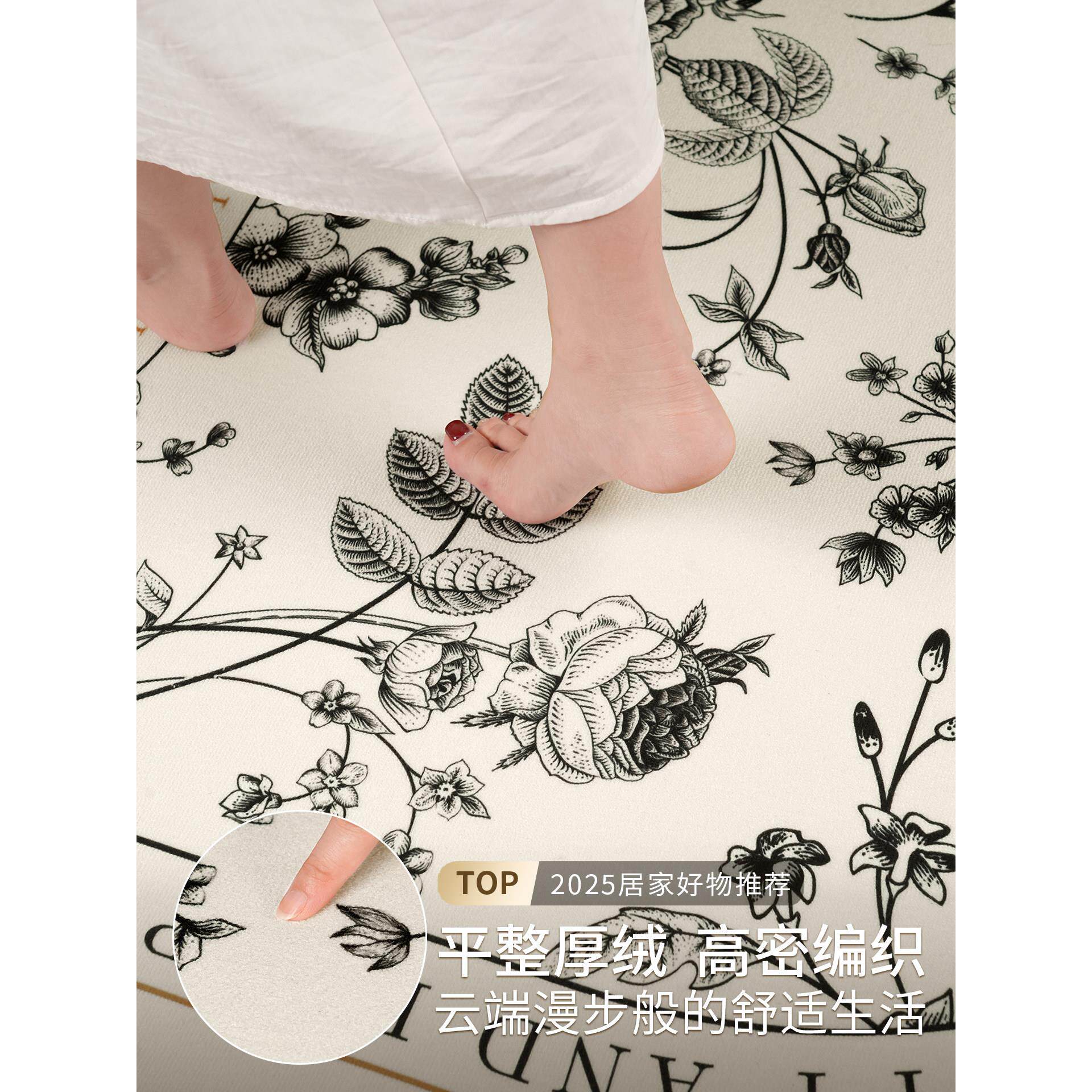 卧室床边毯子中古风房间耐脏防滑衣帽间地毯主卧床下地垫免打理