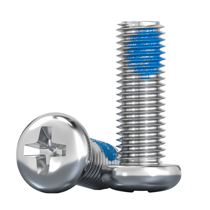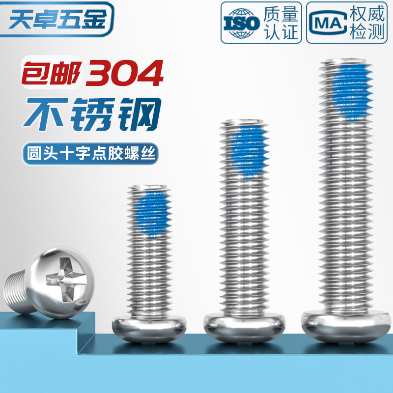 304不锈钢圆头十字点胶防松防脱落涂蓝胶防震盘头螺丝钉M1-M10 mm