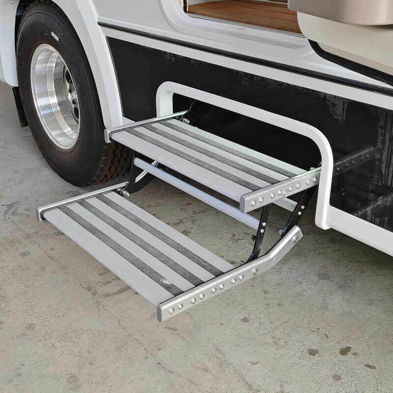 房车折叠踏步拖挂车上车迎宾铝合金手动收缩单层双层脚踏电动踏板