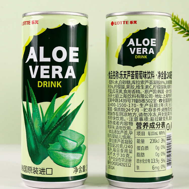韩国原装进口饮料饮品LOTTE 乐天芦荟葡萄味240mlx30瓶饮料整箱