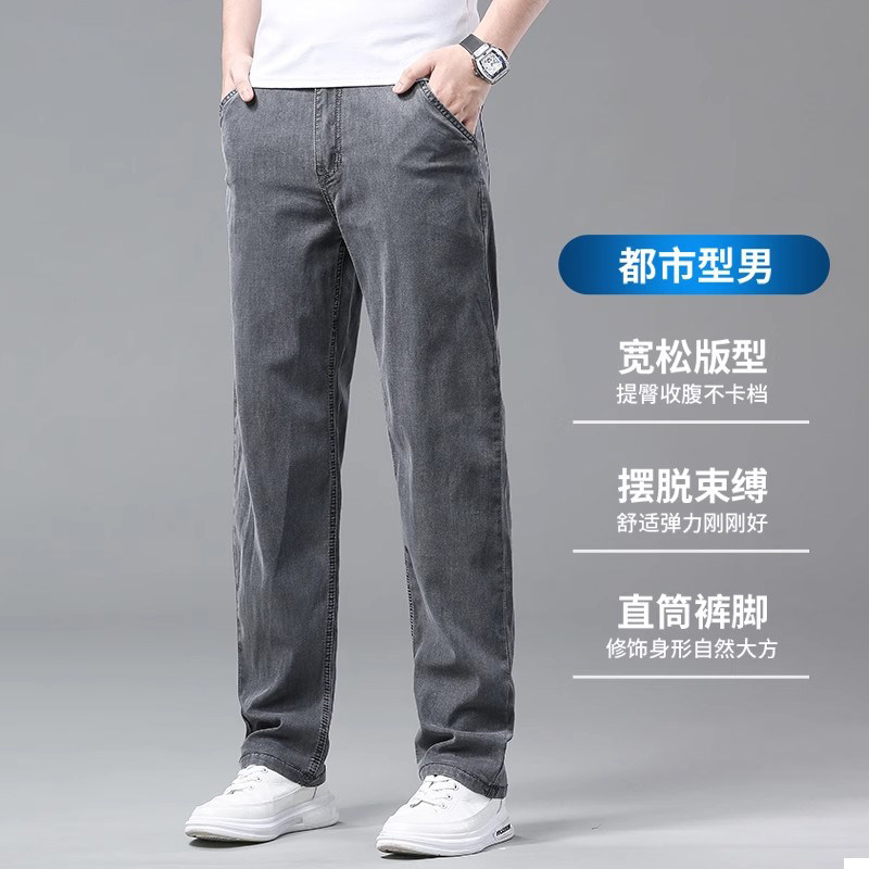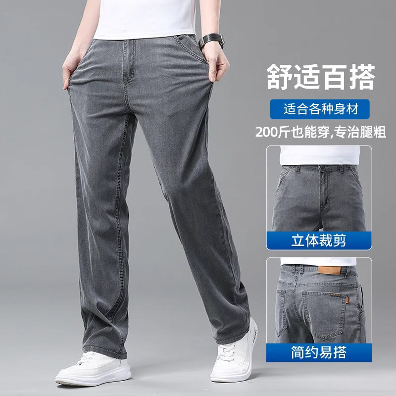 2025夏季薄款新款高端冰丝牛仔裤男直筒宽松休闲夏天清爽超薄长裤