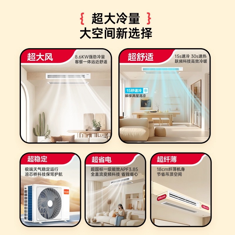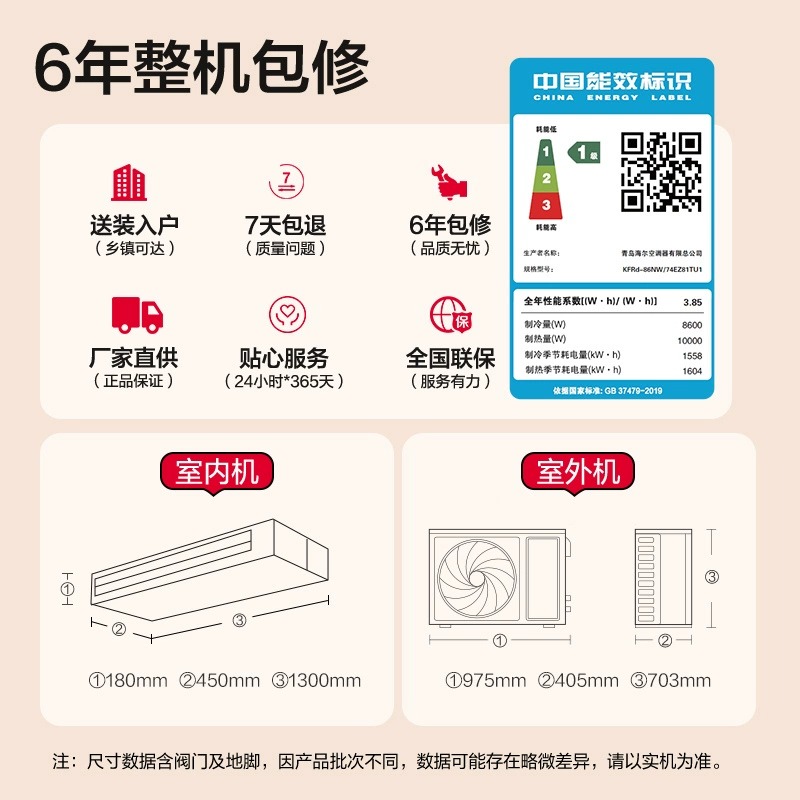 海尔统帅元气Plus 4匹中央空调风管机家用别墅客厅一拖一免费安装