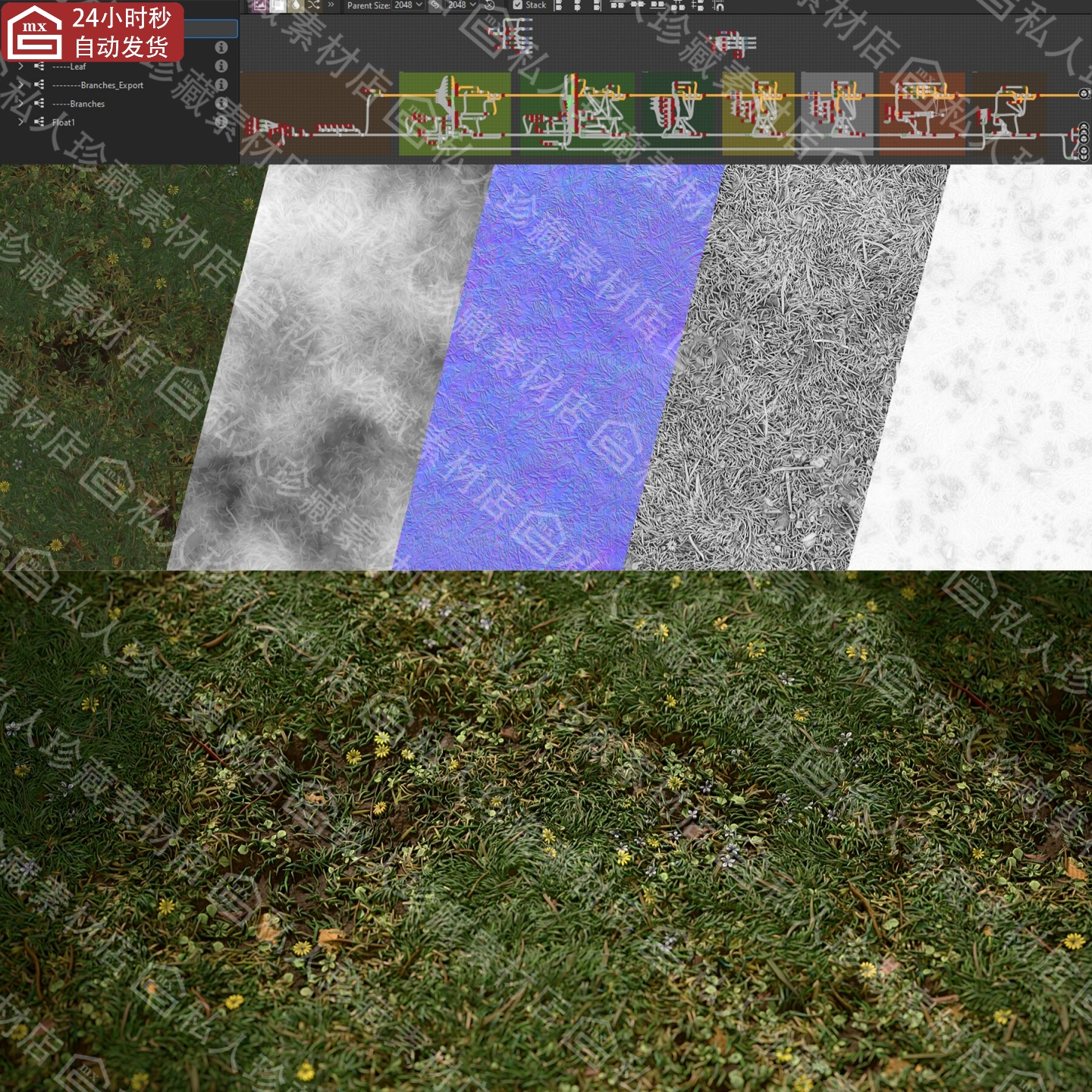 Substance Designer写实地面草地草丛黄花纹理贴图sd材质球pt材质