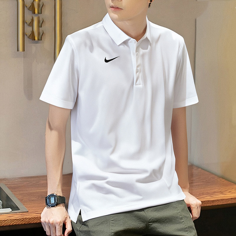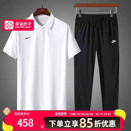 NIKE耐克休闲套装男白色短袖POLO衫长裤子跑步健身运动T恤两件套