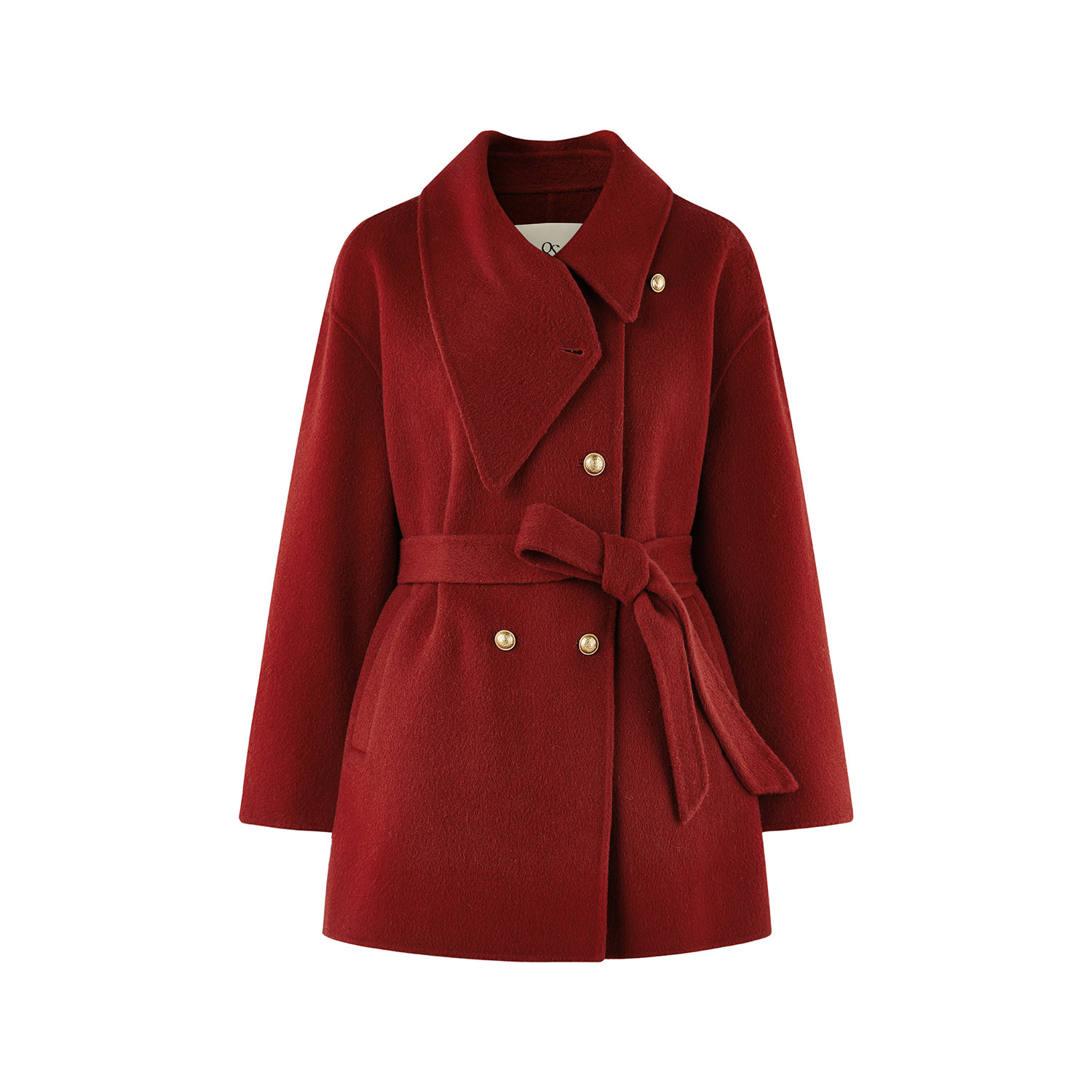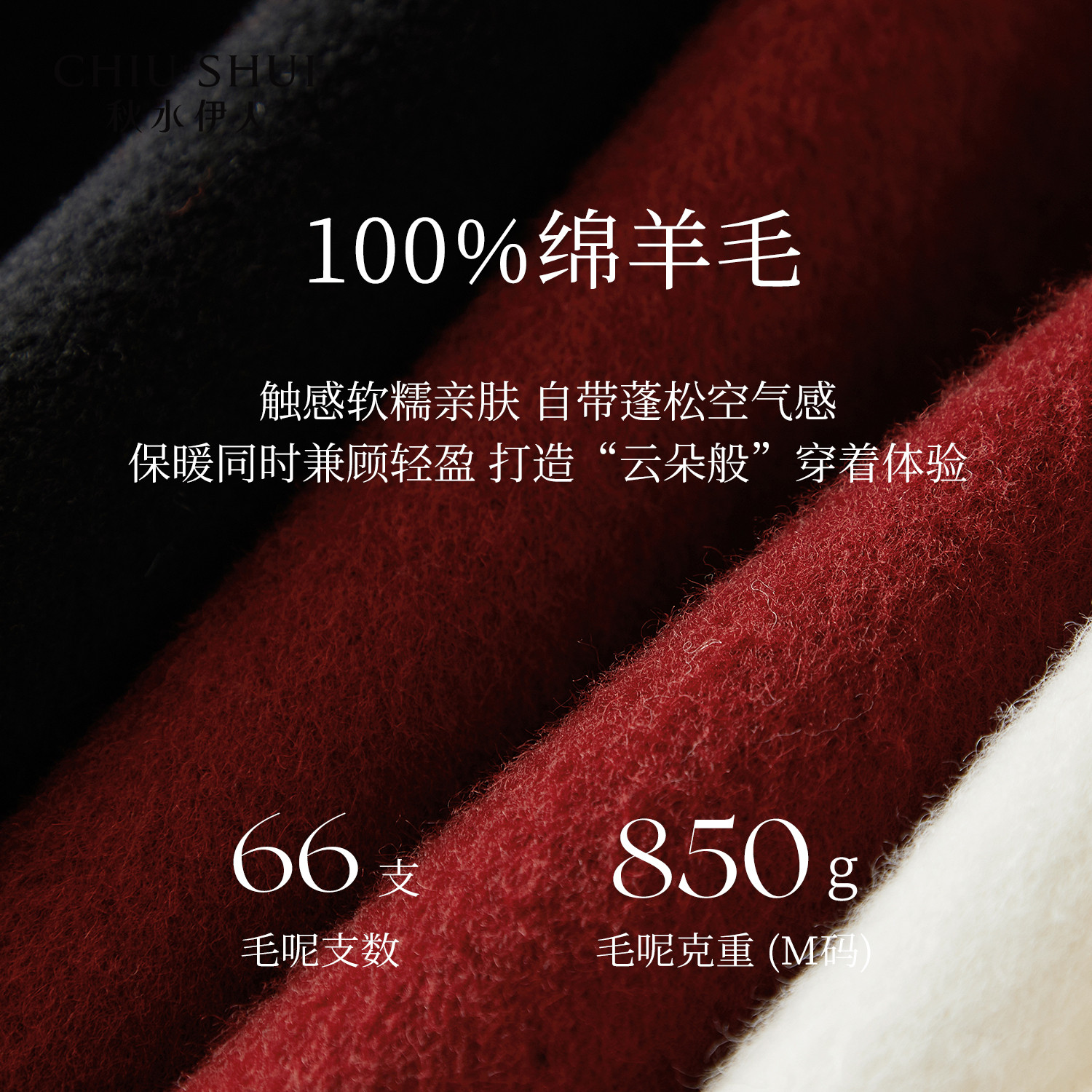 秋水伊人优雅100%绵羊毛翻领红色大衣2025年冬季新款通勤毛呢外套