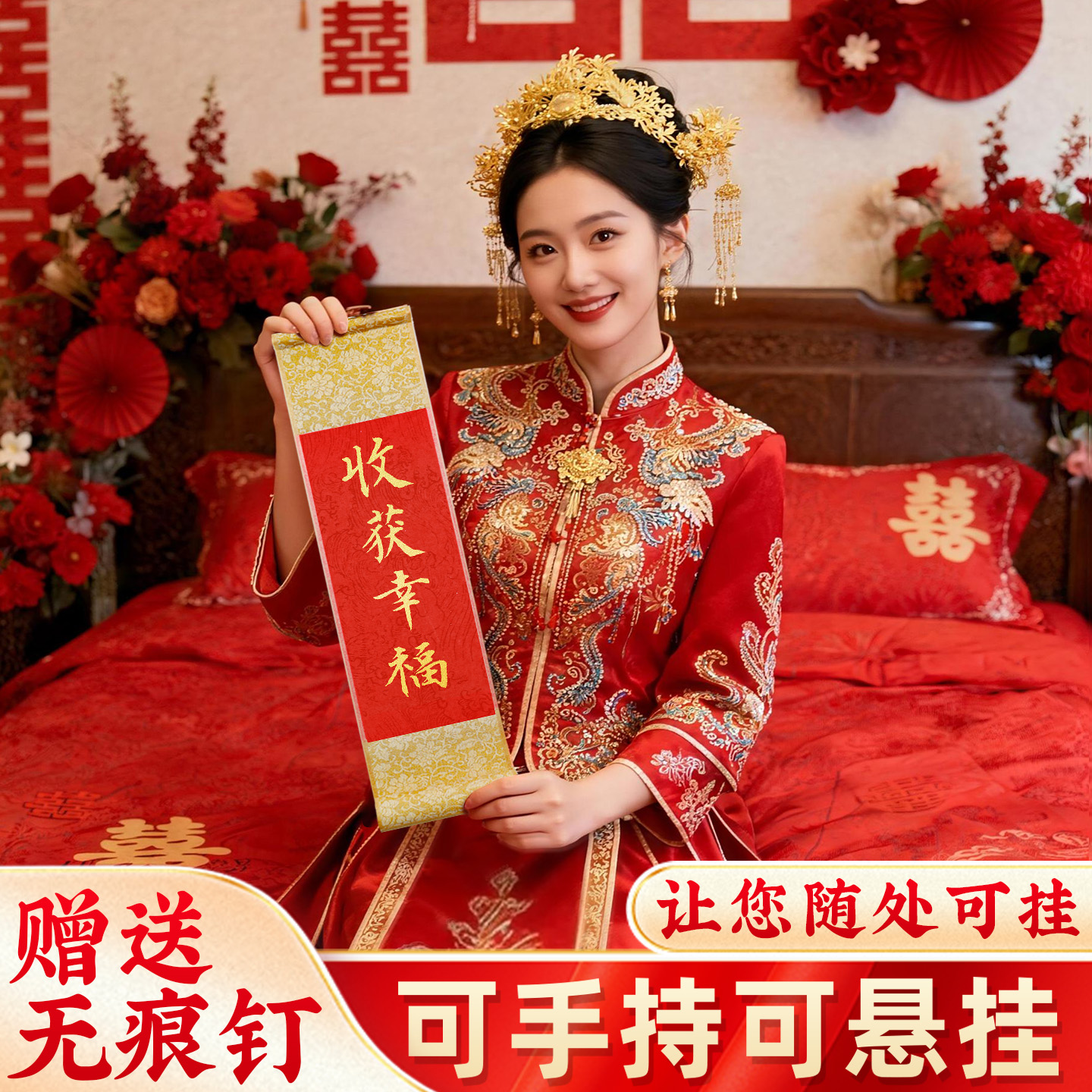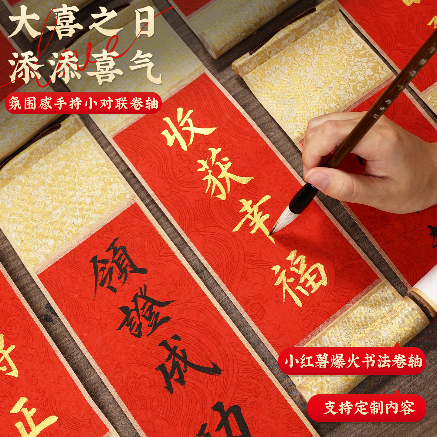 结婚小对联手写卷轴定制喜对堵门迷你小对联女方创意婚房拍照道具