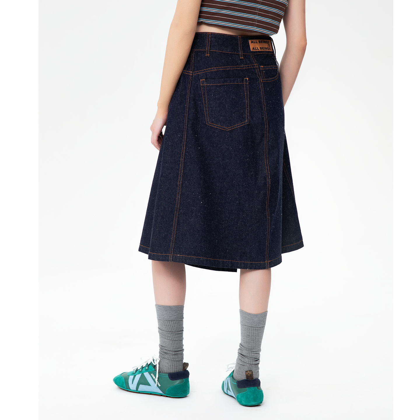 ALL BEINGS25AW秋季新款不对称解构靛蓝a字摆百搭牛仔半身裙女