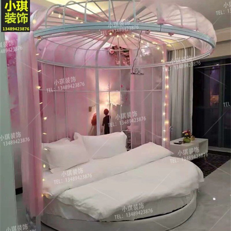 创意铁艺大圆床儿童公主床单双人床时尚情侣婚床酒店装饰大型鸟笼