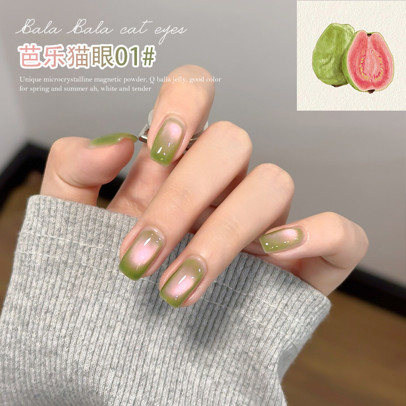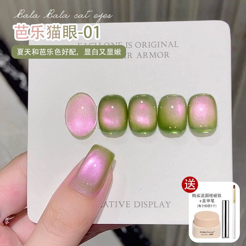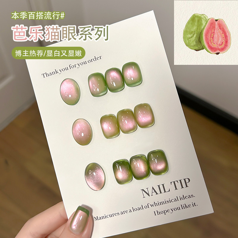 芭乐猫眼指甲油胶2026网红爆闪清新显白绿色玻璃珠猫眼美甲店专用