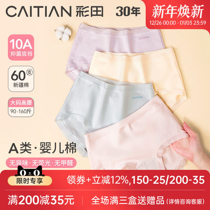 彩田2025年内裤女A类新疆棉高腰大码亲肤舒适10A抗菌裆女士三角裤