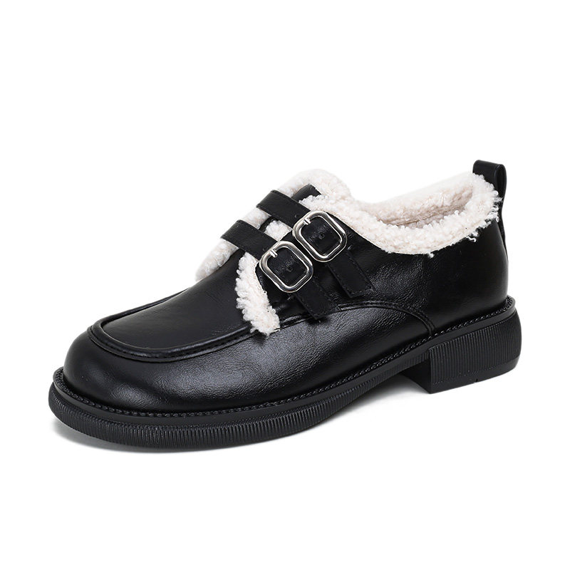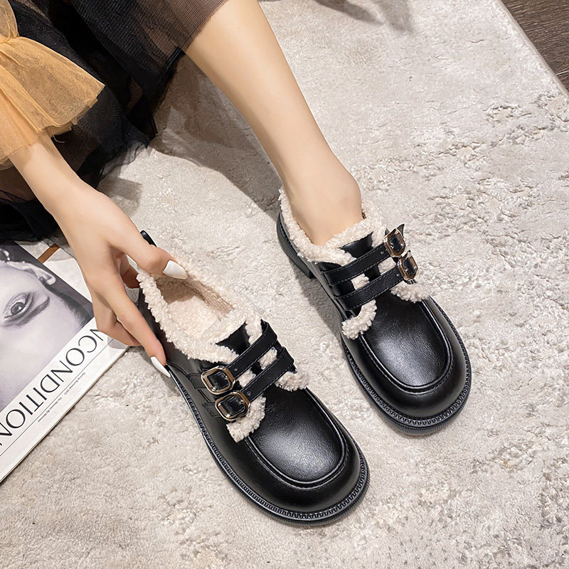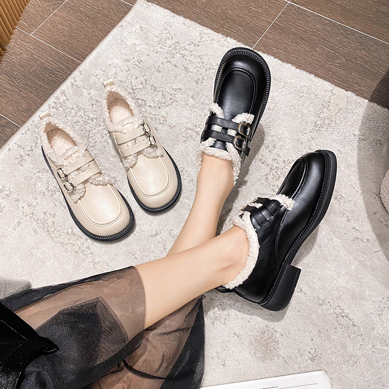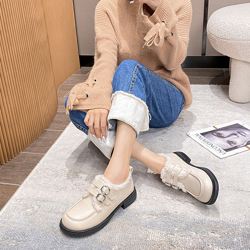 厚底英伦小皮鞋女秋冬2025新款毛毛乐福鞋加绒棉鞋大码女鞋41到43