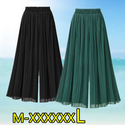 加肥加大码女装胖mm九分雪纺阔腿裤夏中年妈妈垂感宽腿裤百褶裤裙