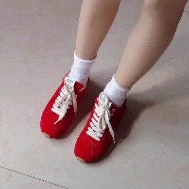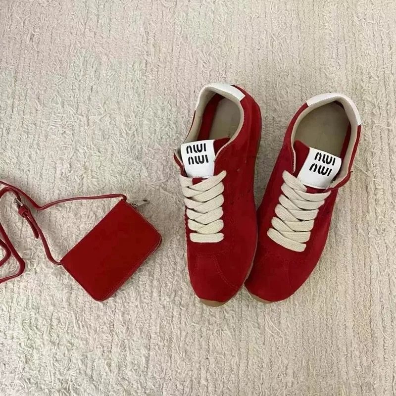 羊皮版~miu家复古轻便平底德训鞋女2025新款运动休闲鞋系带阿甘鞋