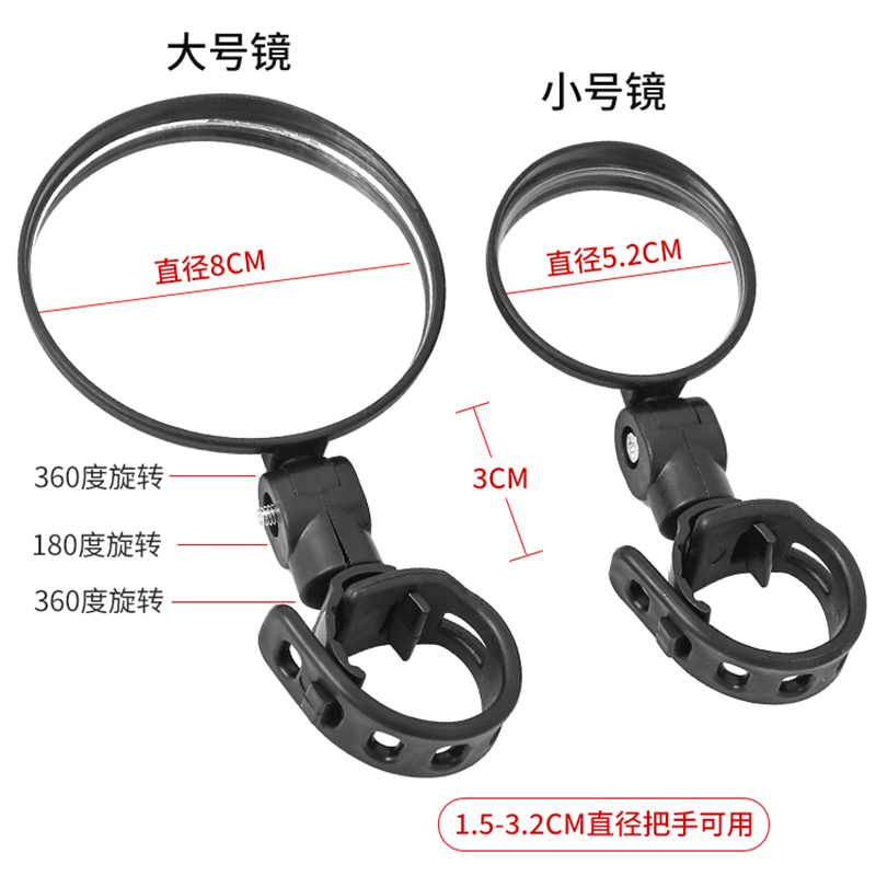 电动车后视镜电瓶车凸面镜山地车自行车大视野安全可靠通用配件