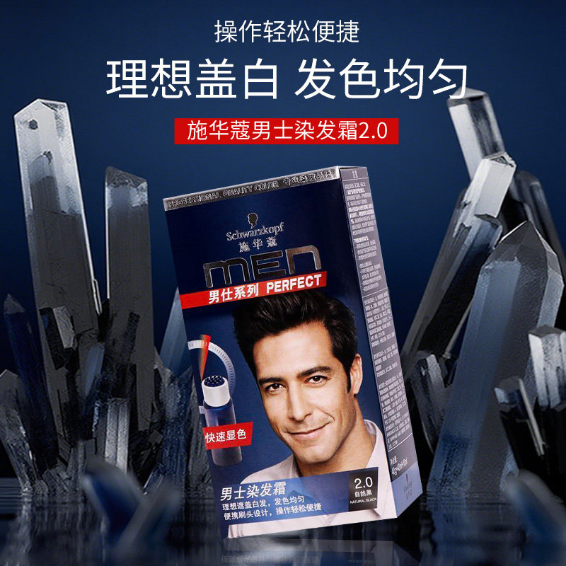 施华蔻植物染漂发剂膏无氨遮盖白发棕珍珠黑色自己在家染男士专用
