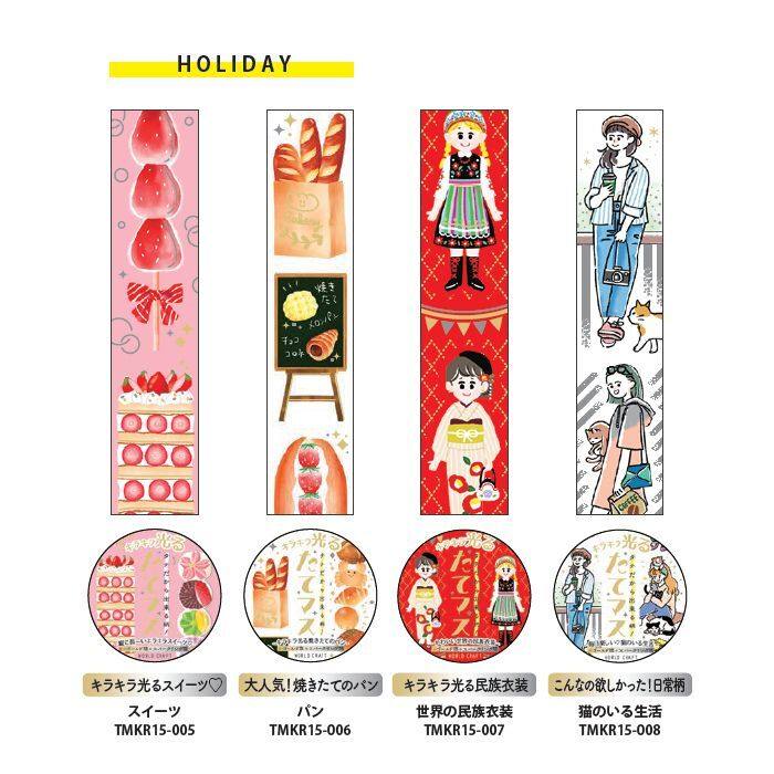 现货 World Craft 锡箔烫金和纸胶带 花朵心形 面包猫咪 气球手账