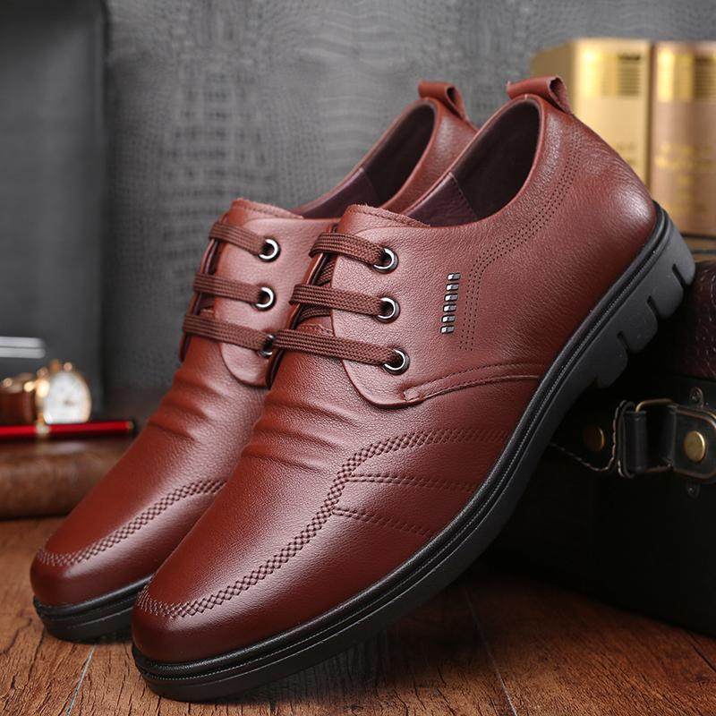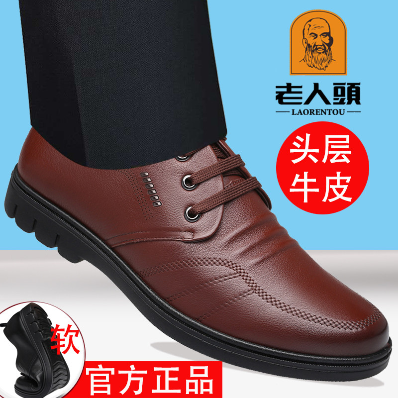 老人头皮鞋男真皮商务休闲秋季真牛皮透气软皮软底大码中年爸爸鞋