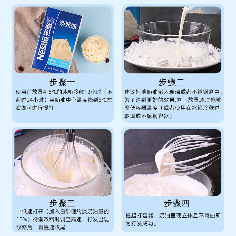雀巢动物淡奶油1L稀奶油家用烘焙蛋糕裱花蛋挞液奶盖雪顶原料专用