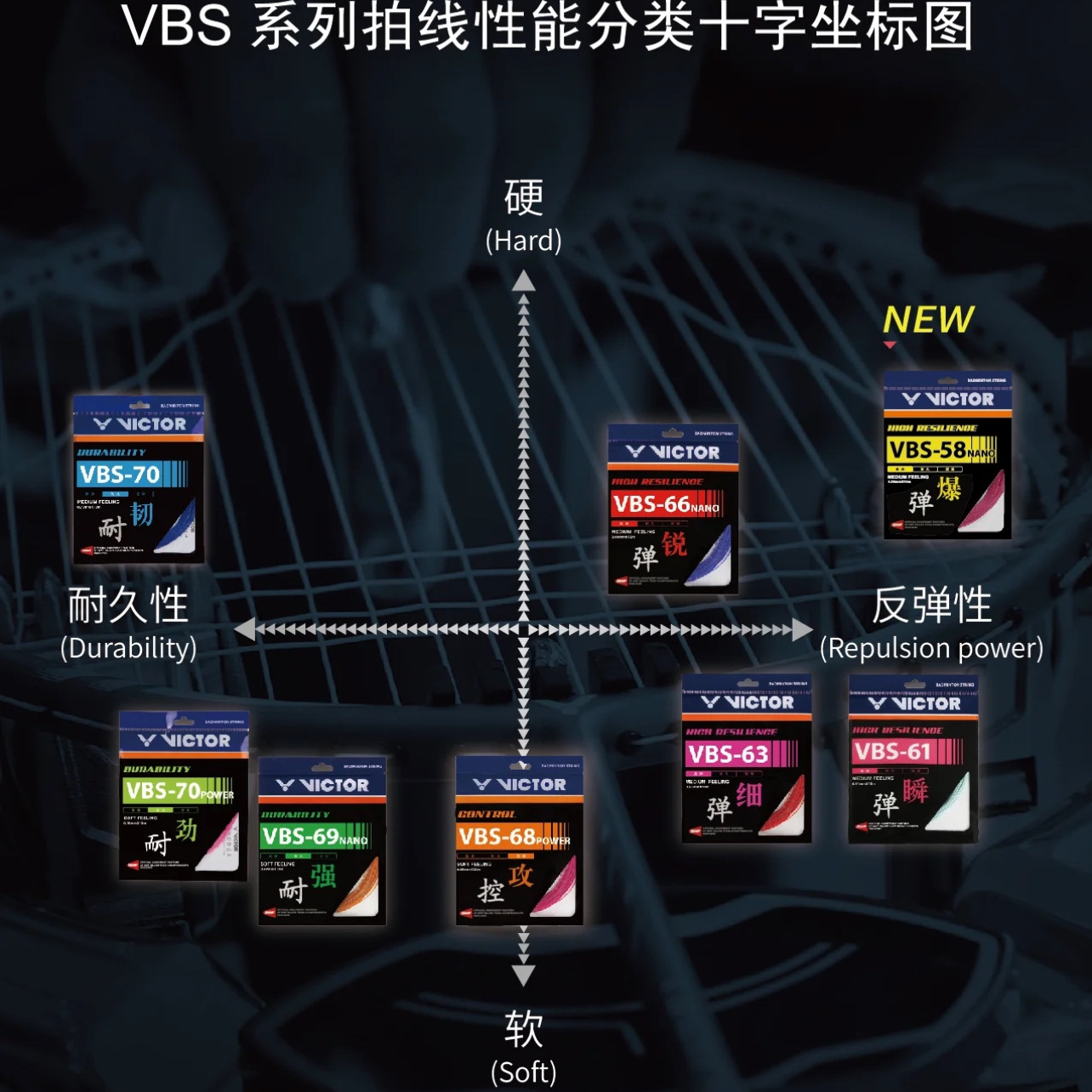 vbs61专业颜色高弹型软硬适中超细威克多VICTOR胜利羽毛球拍线