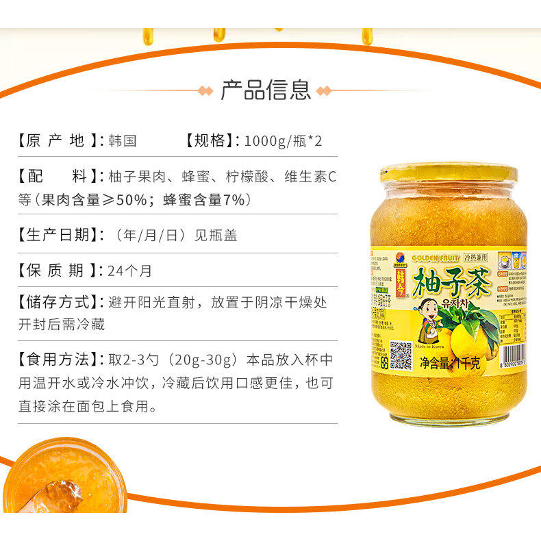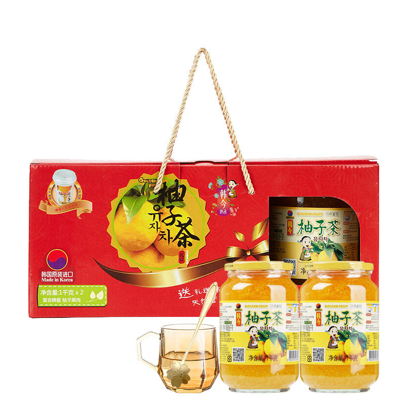 韩今蜂蜜柚子茶1000g*2冲调饮品饮料果实茶水果茶蜜炼果酱礼盒装