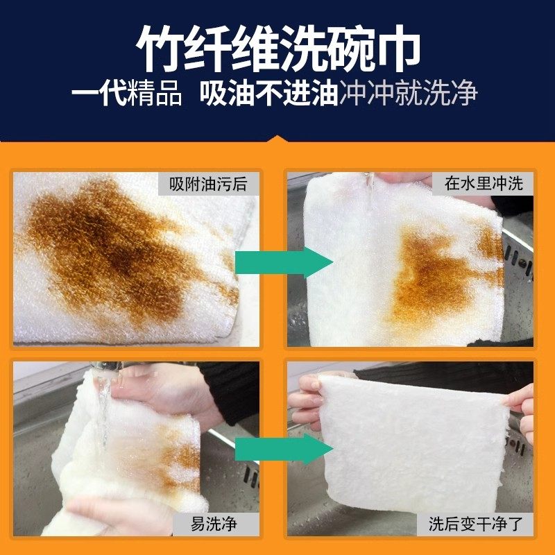 竹纤维不易沾油洗碗布清洁抹布家用厨房专用吸水去油洗碗巾易清洗