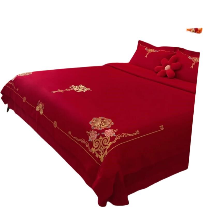 新中式结婚四件套纯棉全棉2u024新款红色被套婚庆床单婚嫁床上用