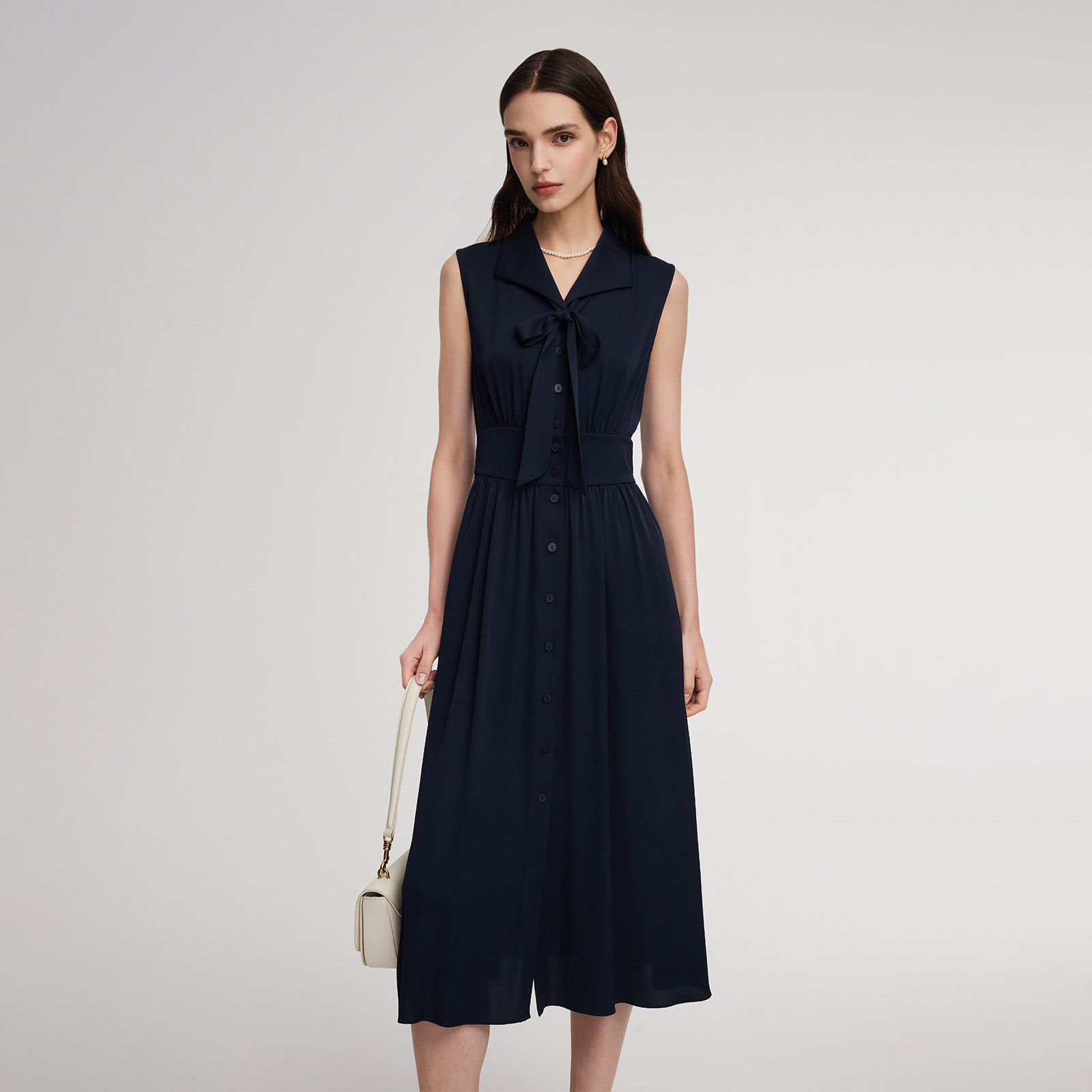 首降3折|歌莉娅真丝连衣裙女夏季高级感桑蚕丝收腰无袖裙子