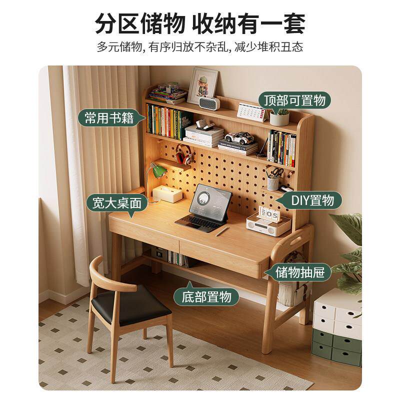 实木书桌书架一体简约办公桌书房办公桌家用儿童学习桌子带书架