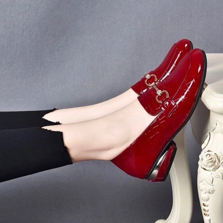 断码真皮单鞋女2025春夏季新款软皮软底乐福鞋粗跟低跟平底皮鞋女