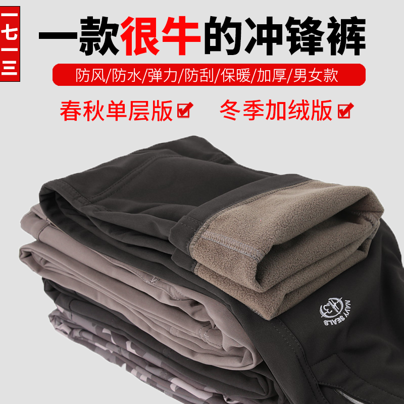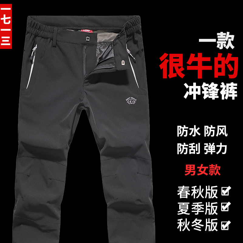 一七一三秋冬男款女户外冲锋裤防水防风加厚保暖软壳滑雪登山裤子