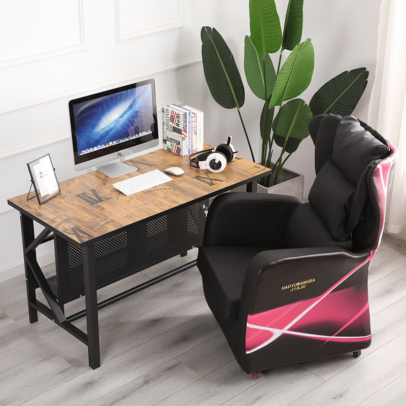 浩宇网咖吧电脑单人懒p人仿皮复古电竞游戏办公住宅皮艺沙发椅子