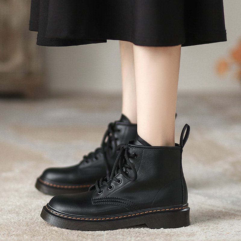 显瘦真皮马丁靴女2025秋冬季新款炸街英伦风单靴加绒平底系带短靴