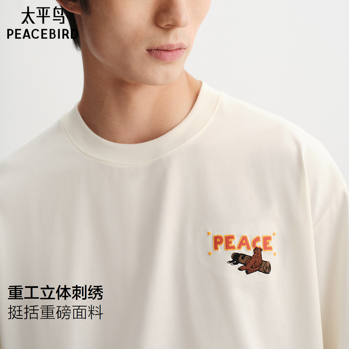 【Jonas联名】太平鸟男装 重磅刺绣宽松白色短袖T恤男B2CNF3201
