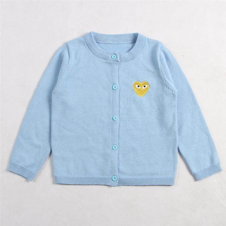 儿童针织开衫外套圆领纯棉男女宝宝毛衣外搭秋冬中小童装爱心刺绣