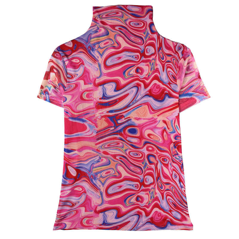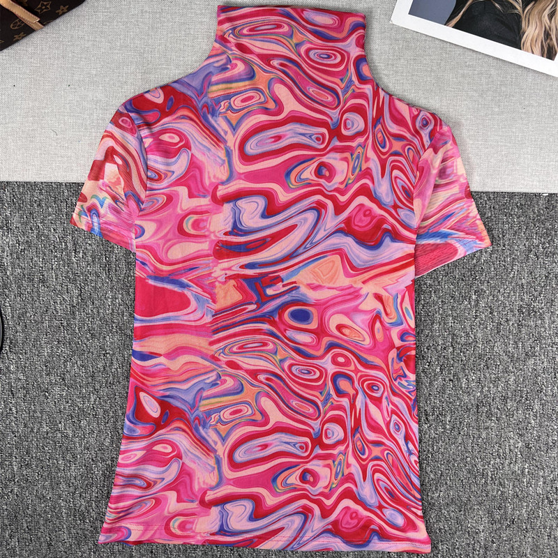 高品质欧货女装新款网纱半高领修身上衣大弹力t恤显瘦高端打底衫
