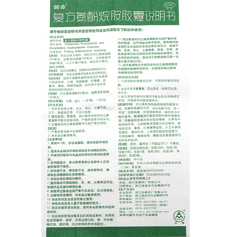包邮】快克 复方氨酚烷胺胶囊10粒 头痛T 流行性感冒的预防