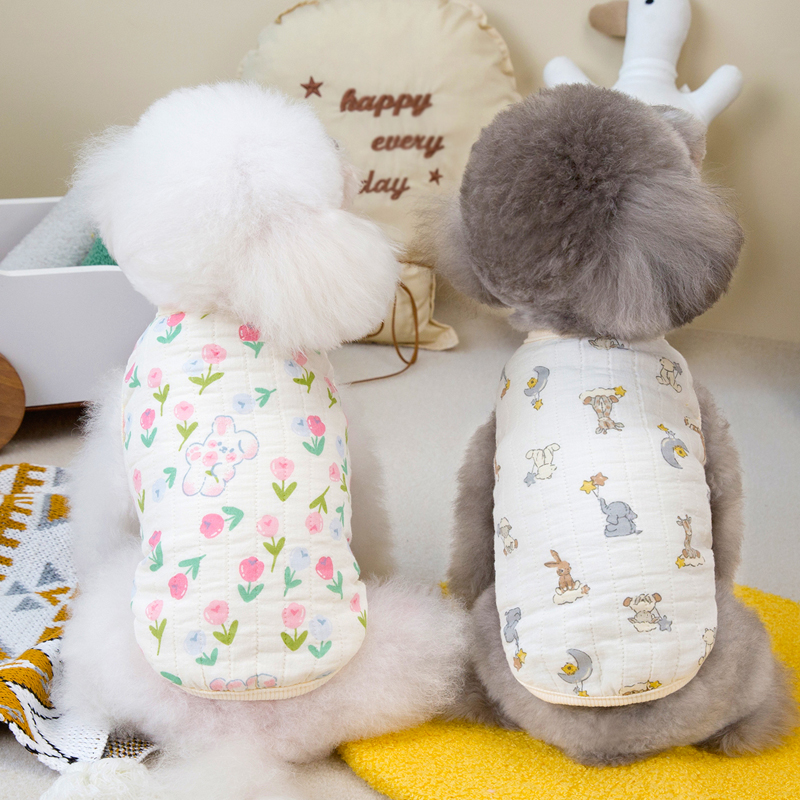 宠物猫咪狗狗衣服春秋冬天泰迪比熊吉娃娃纯棉纱背心保暖开衫马甲