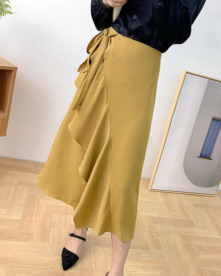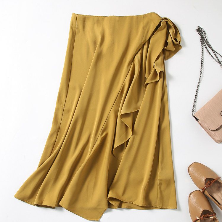 特价!外单 夏季 时尚杂志范浪漫荷叶边高腰雪纺优雅中长款半身裙