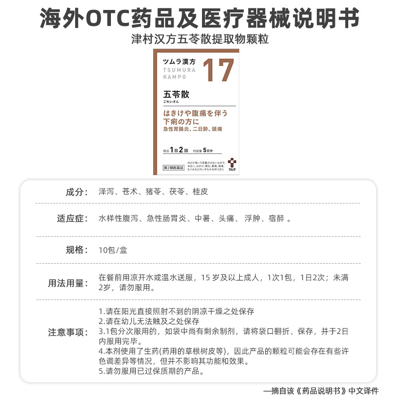 日本津村汉方五苓散健脾祛湿中成药调理脾胃利尿去水肿胃炎祛湿气