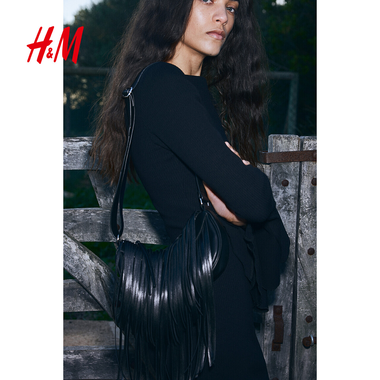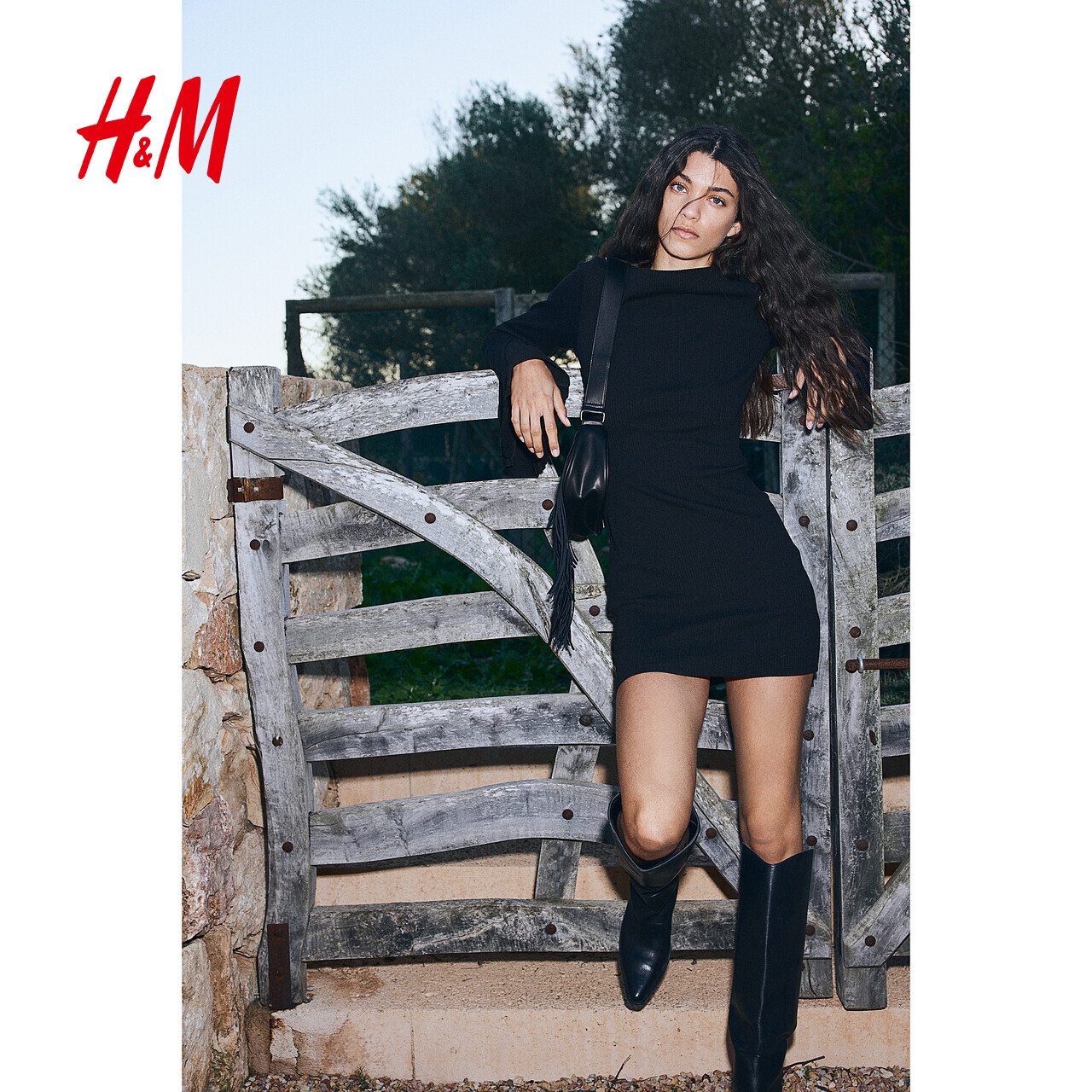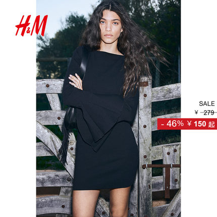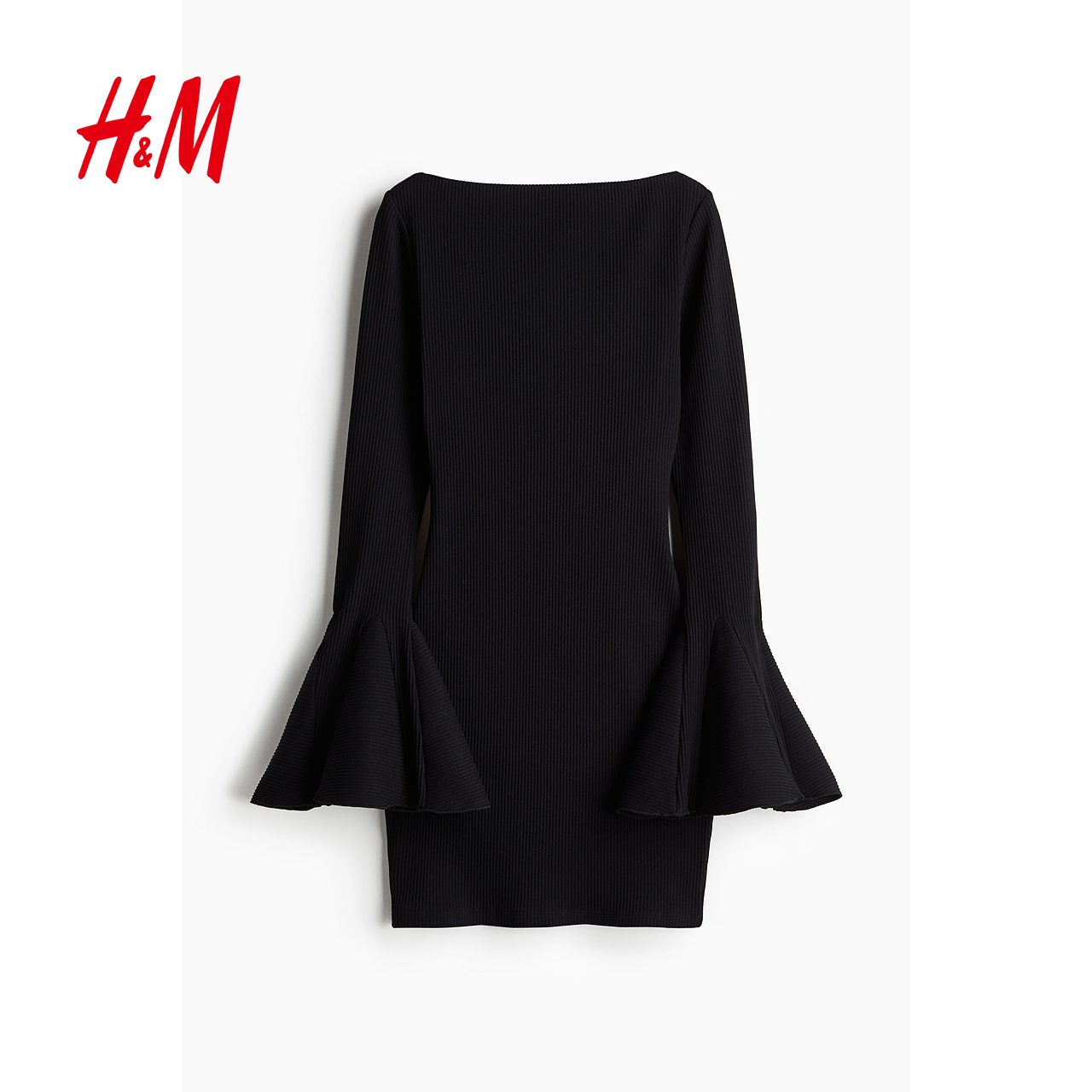 HM女装连衣裙2025秋季新款宽松喇叭袖罗纹简约舒适短款裙1268201