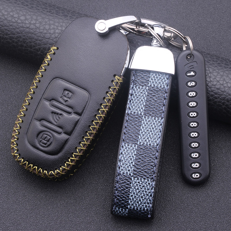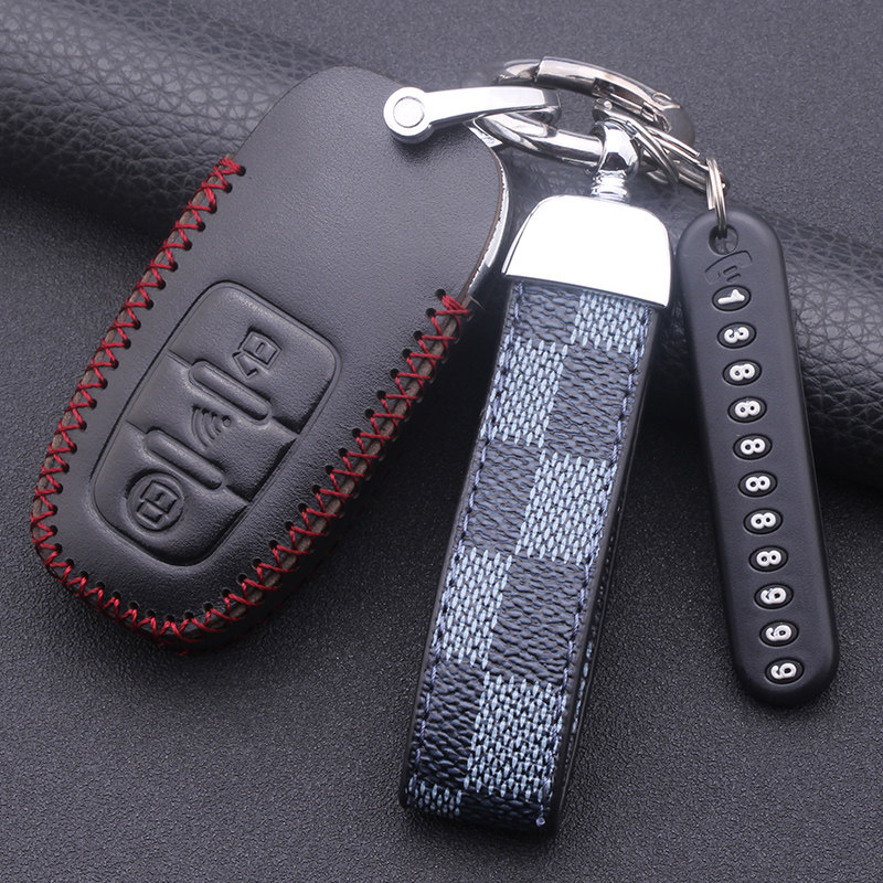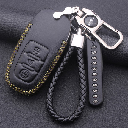 后配改装汽车钥匙套奥迪ds大师铁将军一键启动通用锁匙真皮包壳扣