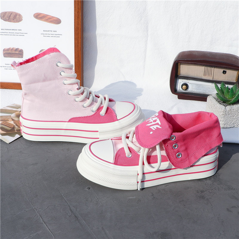 厚底帆布鞋女高帮2025春夏百搭韩版新款潮学生休闲运动板鞋子ins