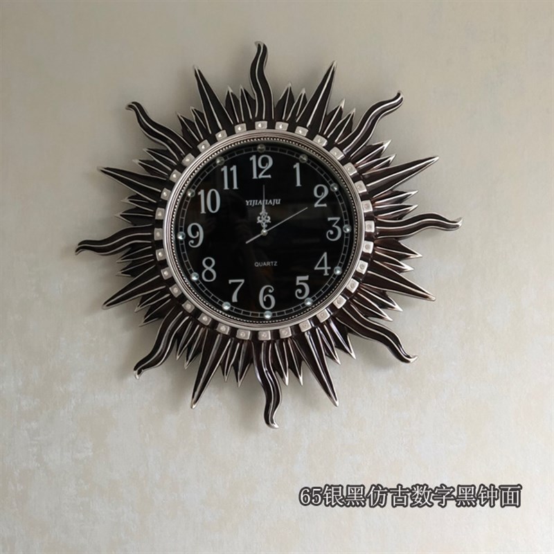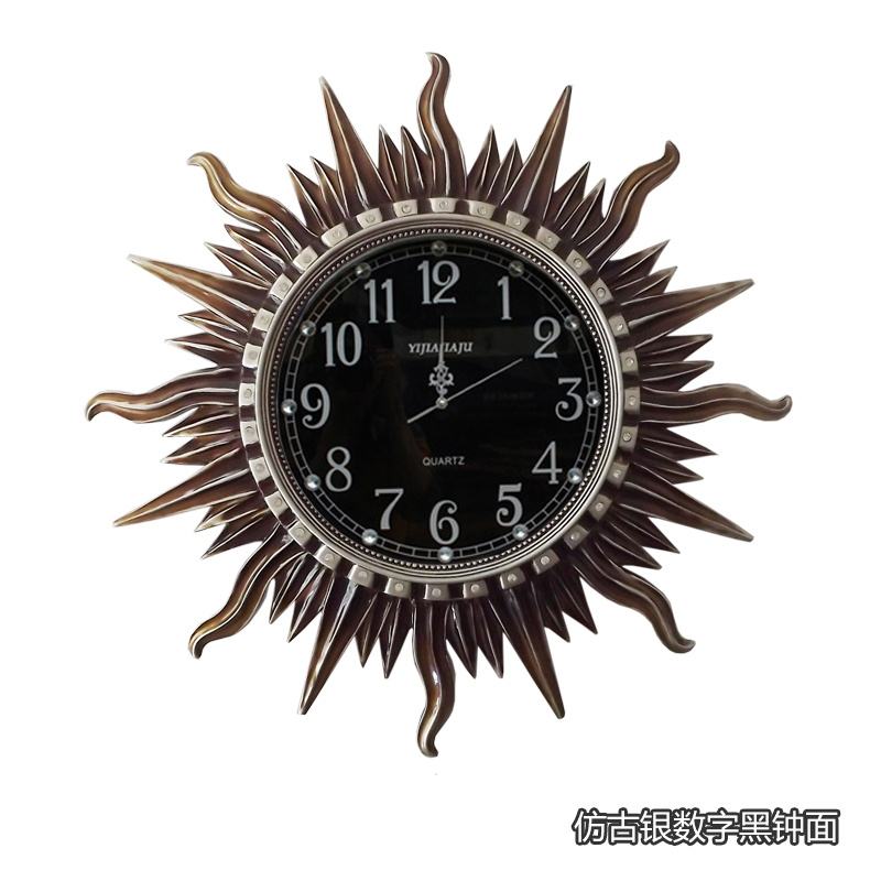 极速欧式挂钟客厅时钟静音大号A复古太阳钟圆形石英钟表酒店宾馆