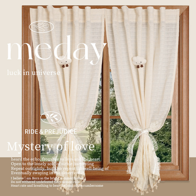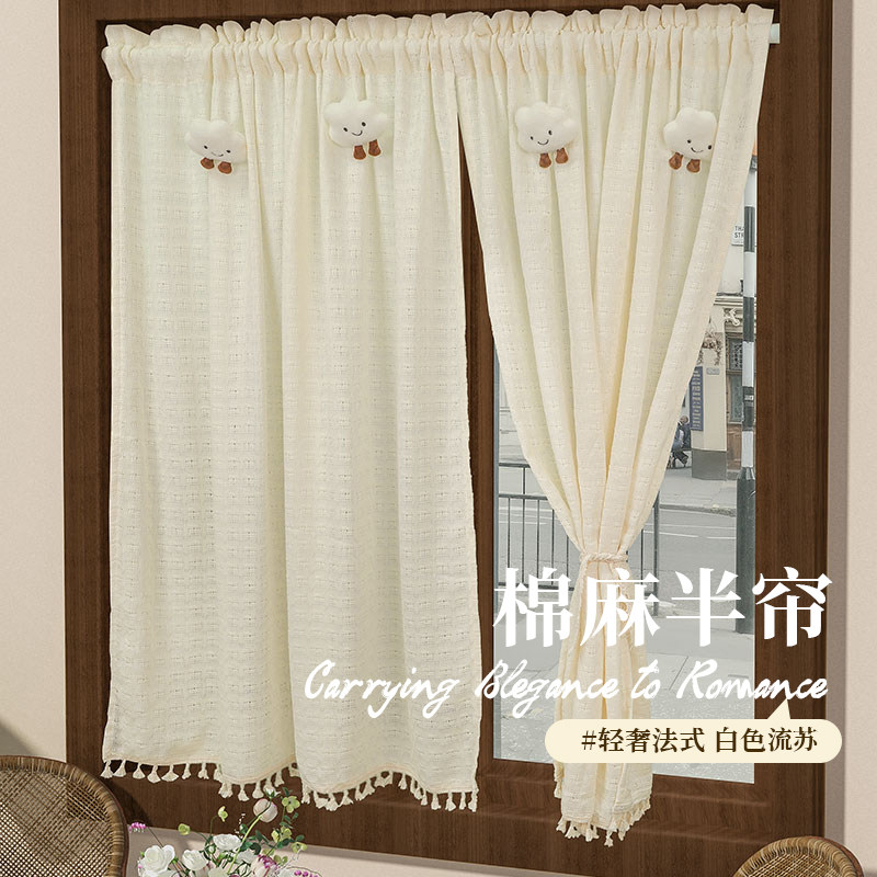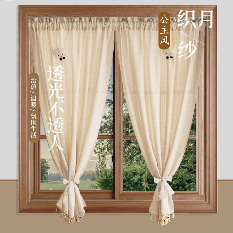 法式复古棉麻窗帘透光不透人简易清新卧室飘窗纱帘魔术贴隔断布帘